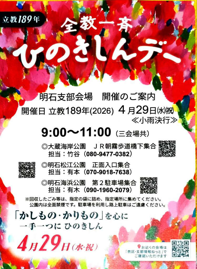 支部布教日 4月28日(火) 10時 山陽電車 藤江駅 改札口前集合