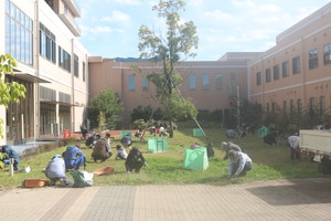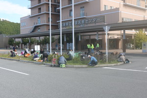 140年祭、最後のようぼく一斉活動で、参加者140名以上(内、ようぼく100名ほど)の皆様にご参加いただきました。また、心配された天候にも恵まれ、秋の穏やか日差しのなか、丹波医療センターに移動して除草ひのきしんをさせていただきました。