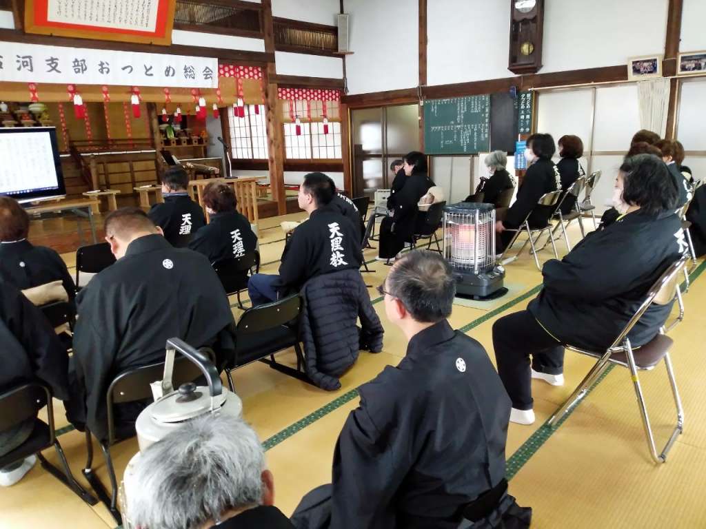 古河支部 掲示板 令和7年度おつとめまなび総会(報告) 2026年02月17日 (火) 【古河支部】 教祖140年祭の旬におつとめまなび総会を開催しました。日々、陽気ぐらしにむかって心新たにお誓い致しました。【日 時】令和7年2月7日(土) 9時30分開始(受付9時より) 【会 場】天理教古河分教会 1.おつとめ 三交代 2.教祖140年祭ビデオ 3.真柱様お言葉拝聴 4.支部長挨拶(参加者34名) Tweet < 前の記事 OLD令和7年度おつとめまなび総会のお知らせ