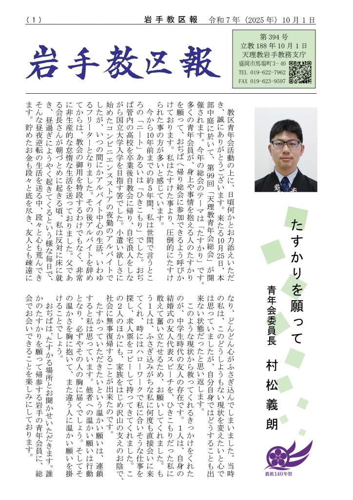 5月24日から27日にかけて、岩手教区おぢばがえりを実施いたしました。ご参加いただきました皆さん、ありがとうございました。詳細は教区報7月号に掲載いたします。