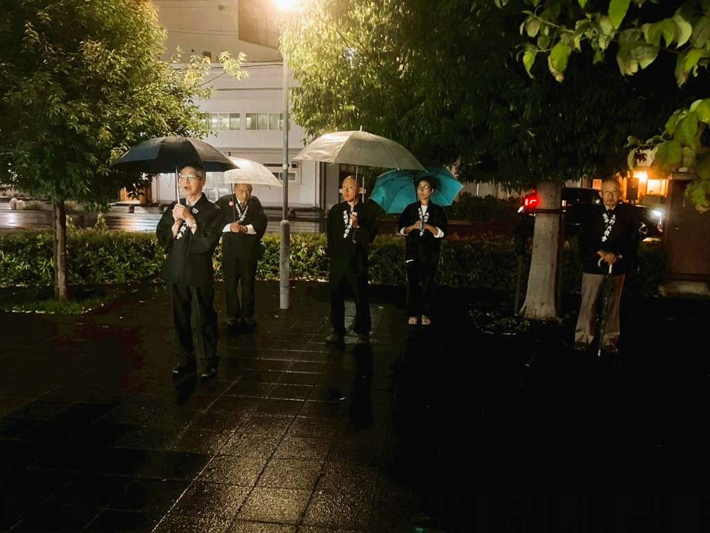 Aブロック・・・JR花園駅前で路傍講演、神名流し