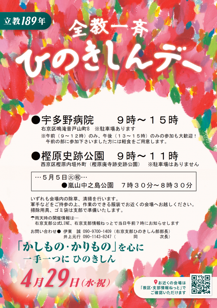 *全教一斉ひのきしんデーに替えさせて頂きます。