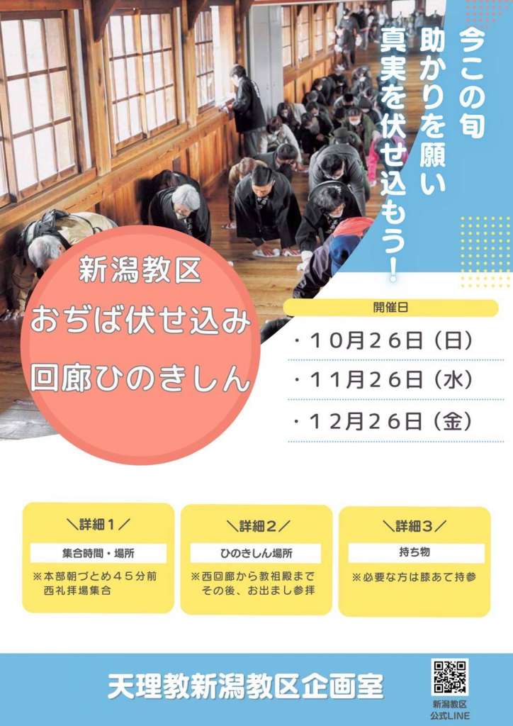 Tweet 基本情報 教務支庁郵便番号950-0912所在地新潟県新潟市中央区南笹口1丁目3番4号 マップ電話025-244-0418FAX025-244-0419 新潟教区ホームページ天理教基礎講座 新潟教区会場