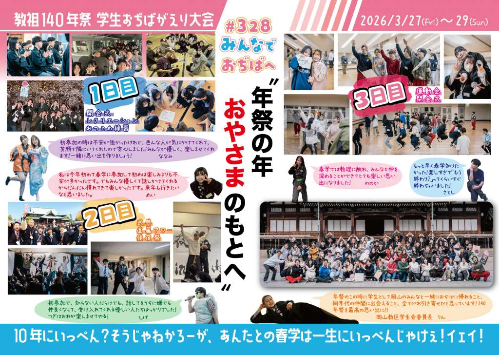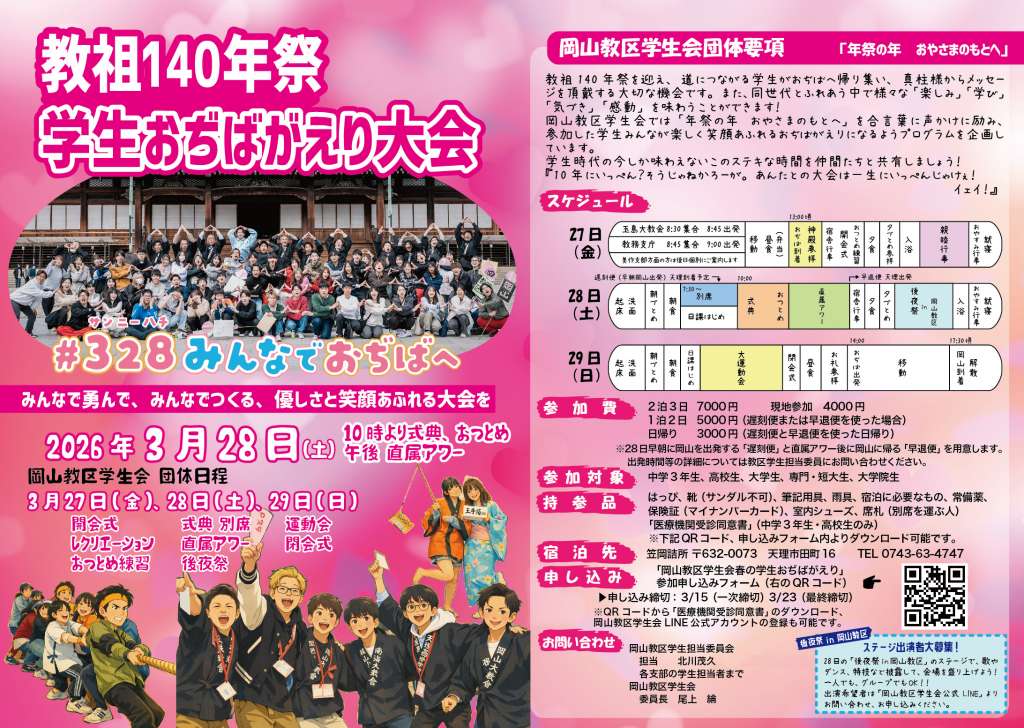 岡山教区学生会参加要項 「年祭の年 おやさまのもとへ」