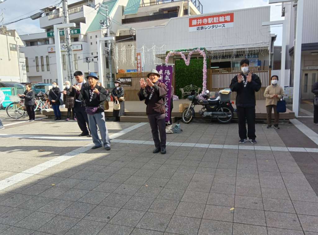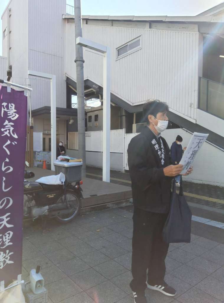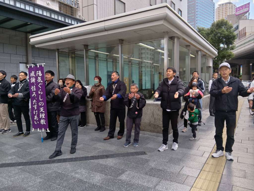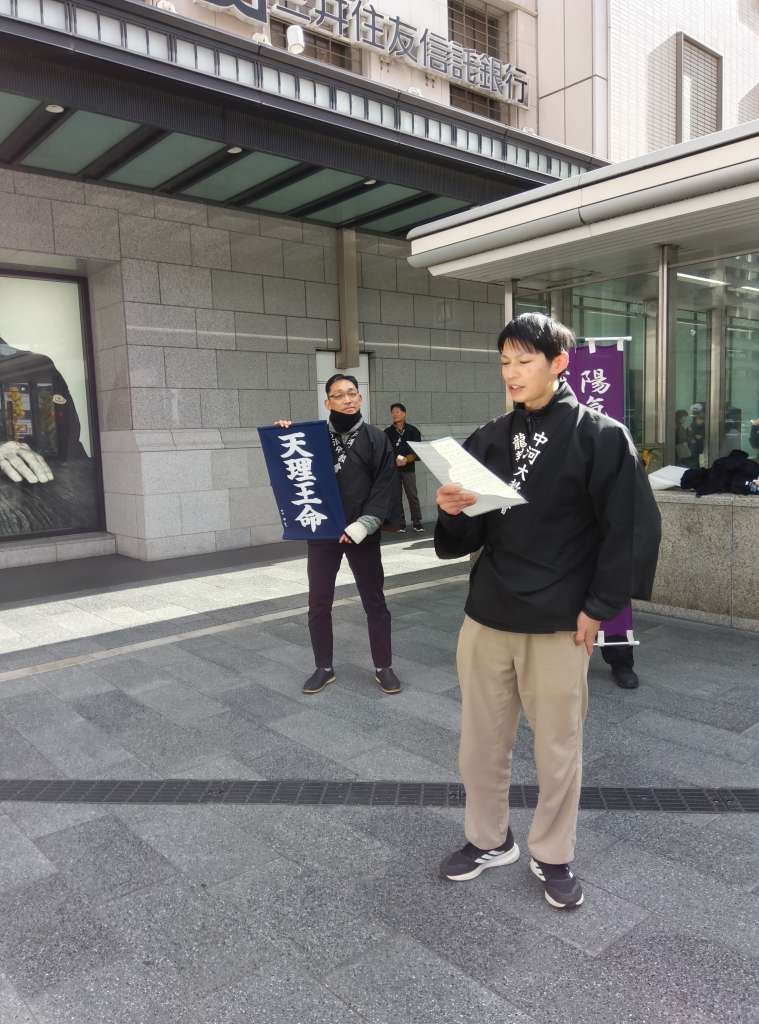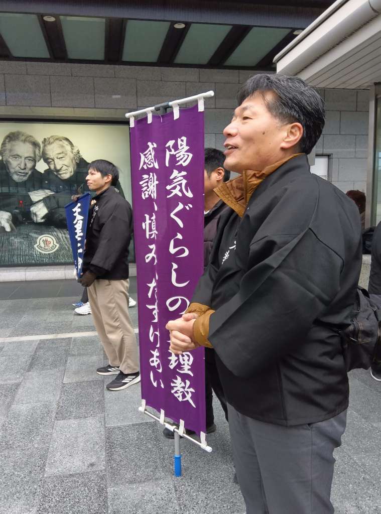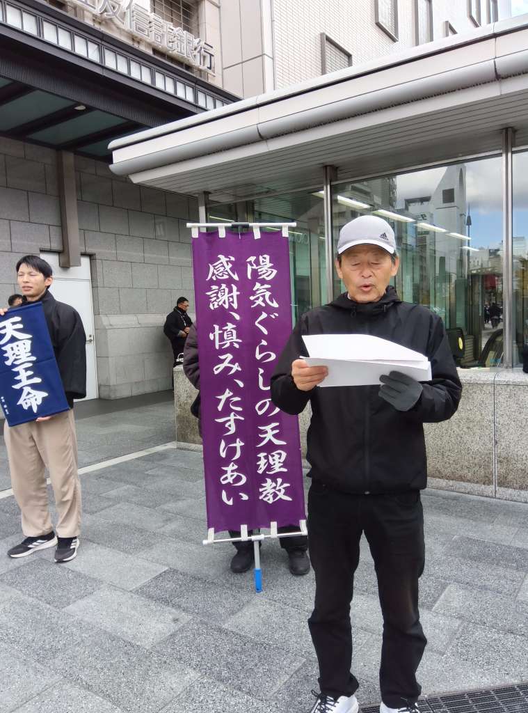 大阪教区では立教189年(令和8年)1月26日教祖140年祭当日までの毎日、難波高島屋付近にて神名流しをさせていただいています。阪南支部としても月一回活動日を設けており、参加者一同で心楽しく意気揚揚と実動させてもらっています。こかん様が世界で初めて神名を流された浪速の街で、今日もどなたかが陽気な風を吹かせていることでしょう。ご年祭に向かう旬、さらなる勇みへの一助にご活用くださいませ。