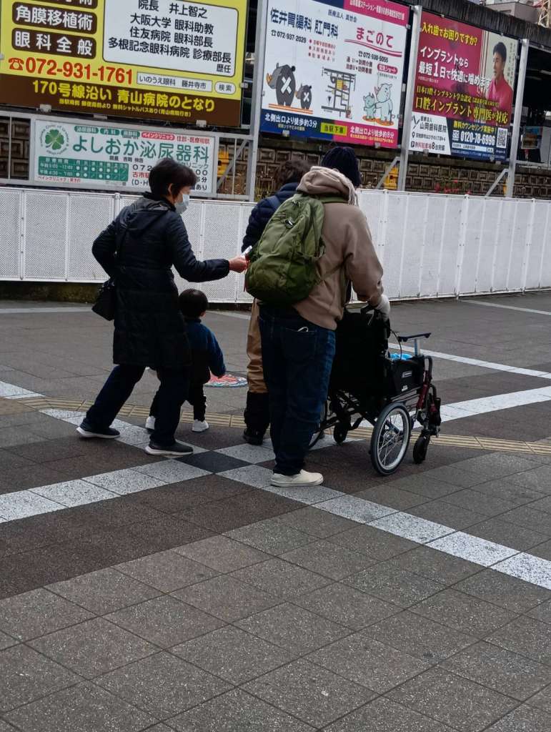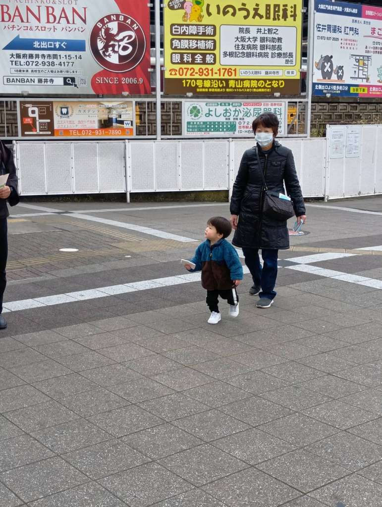 幼子布教師さんも ティッシュ配りに