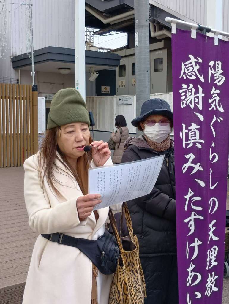 阪南支部では毎月管内の主要駅を拠点にして地域の教友の方と一緒に街頭布教を行っています。