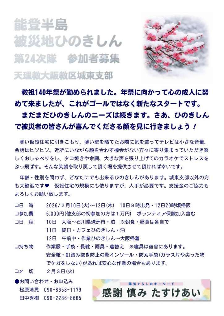 能登半島被災地ひのきしん 第24次隊 募集中