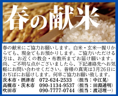 次回、春の献米(3月26日)にも、お力添え賜りますようお願い申し上げます。