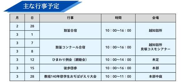 おつとめ、諭達拝読、教会本部からのビデオメッセージに続き、支部長講話があり屋内行事を終了。その後、屋外にて「みしま広場」が行われ、支部鼓笛隊演奏、雅楽演奏が披露されました。