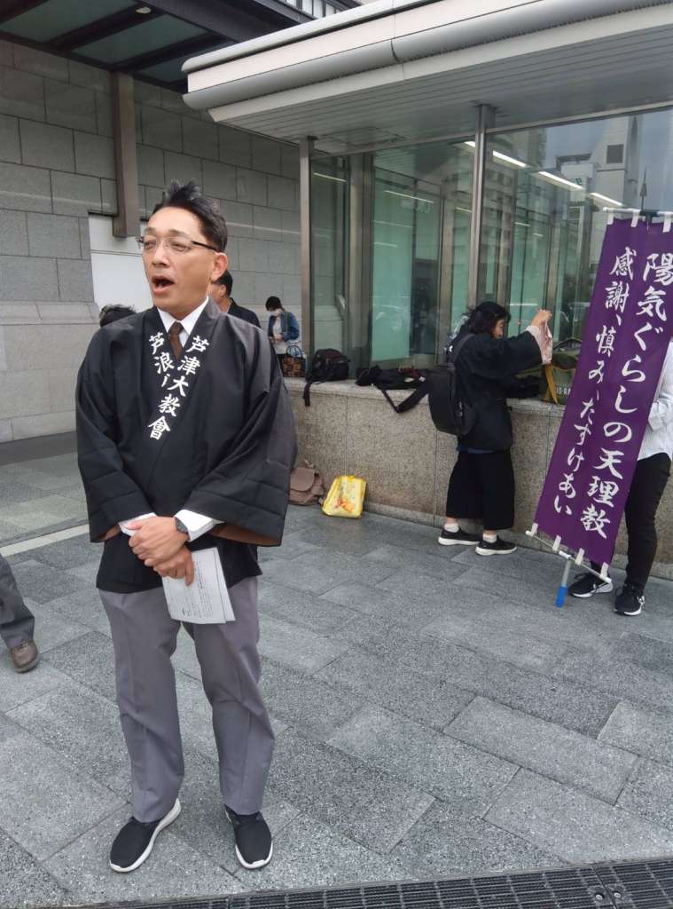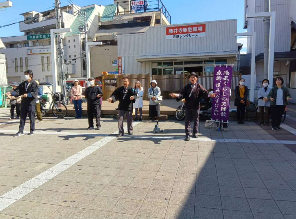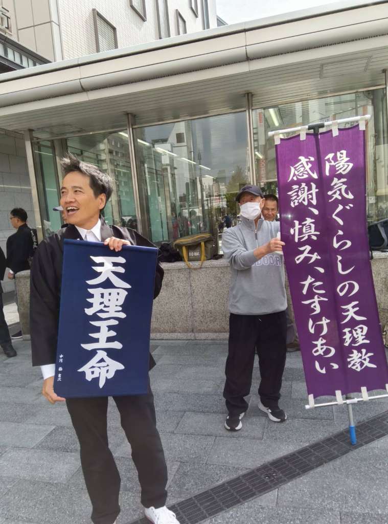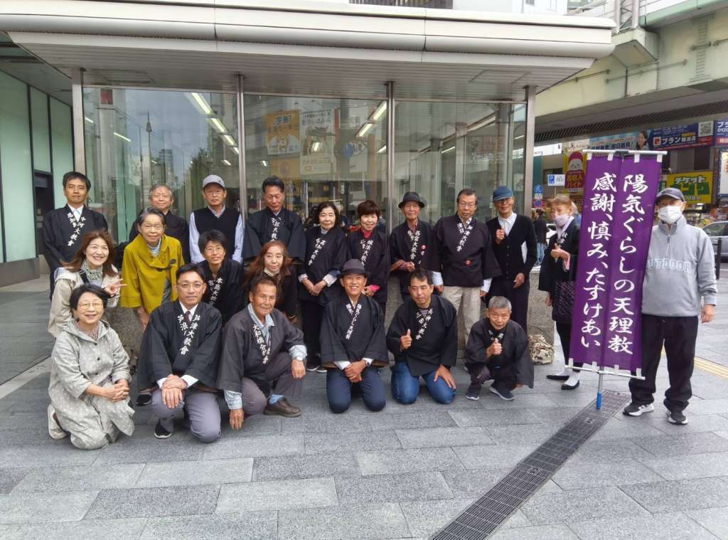 大阪教区では立教189年(令和8年)1月26日教祖140年祭当日までの毎日、難波高島屋付近にて神名流しをさせていただいています。阪南支部としても月一回活動日を設けており、参加者一同で心楽しく意気揚揚と実動させてもらっています。こかん様が世界で初めて神名を流された浪速の街で、今日もどなたかが陽気な風を吹かせていることでしょう。ご年祭に向かう旬、さらなる勇みへの一助にご活用くださいませ。