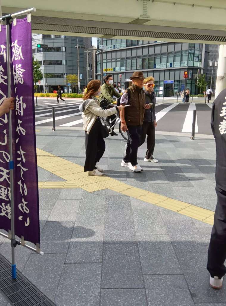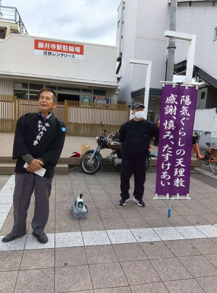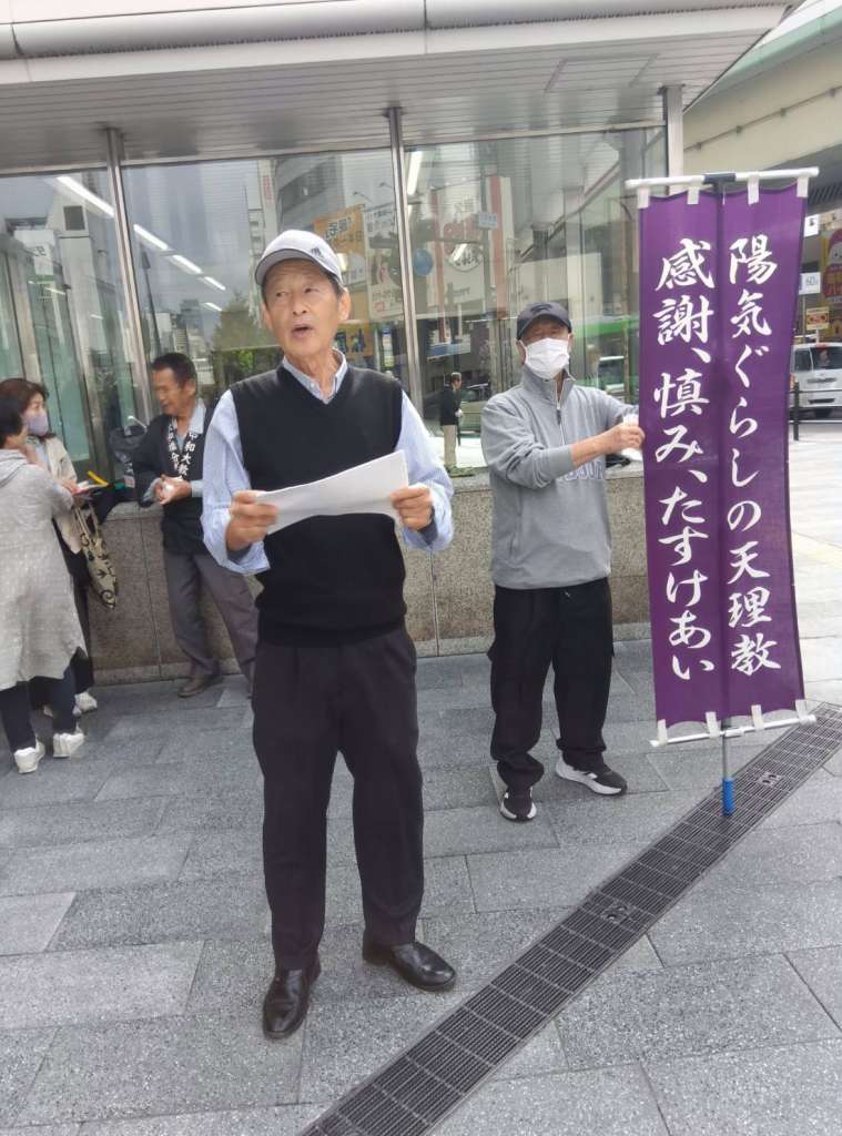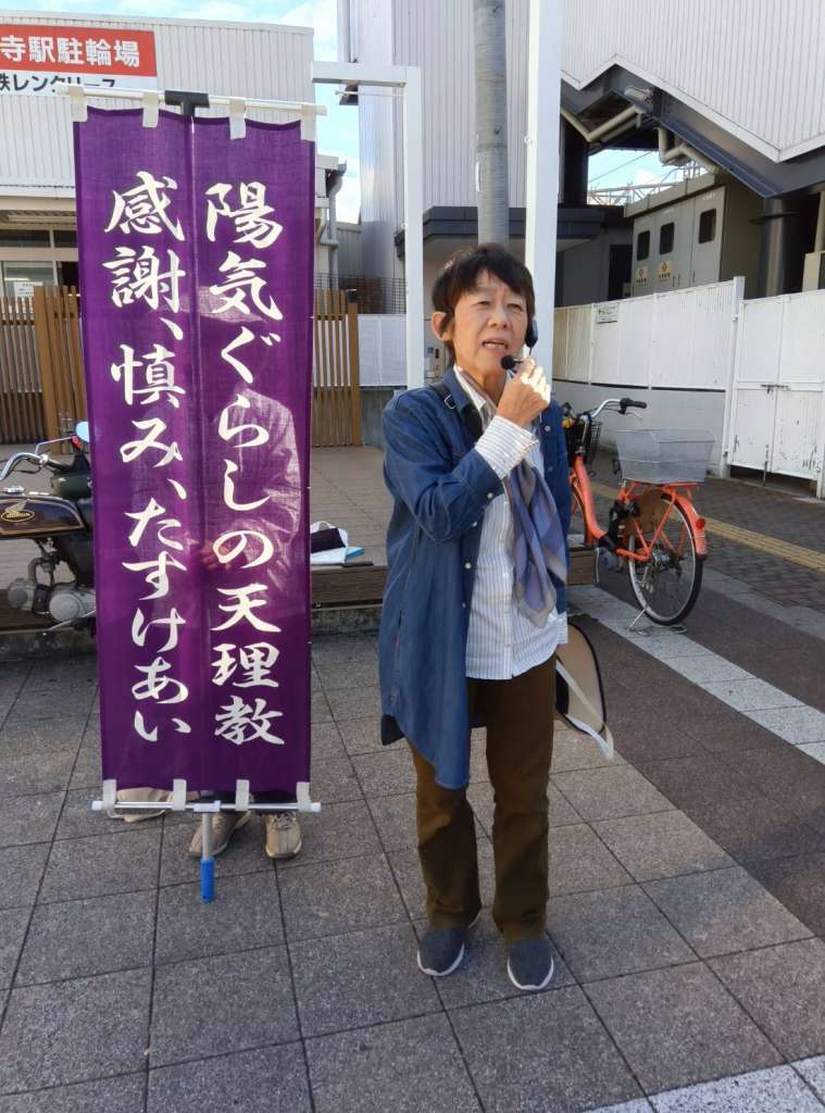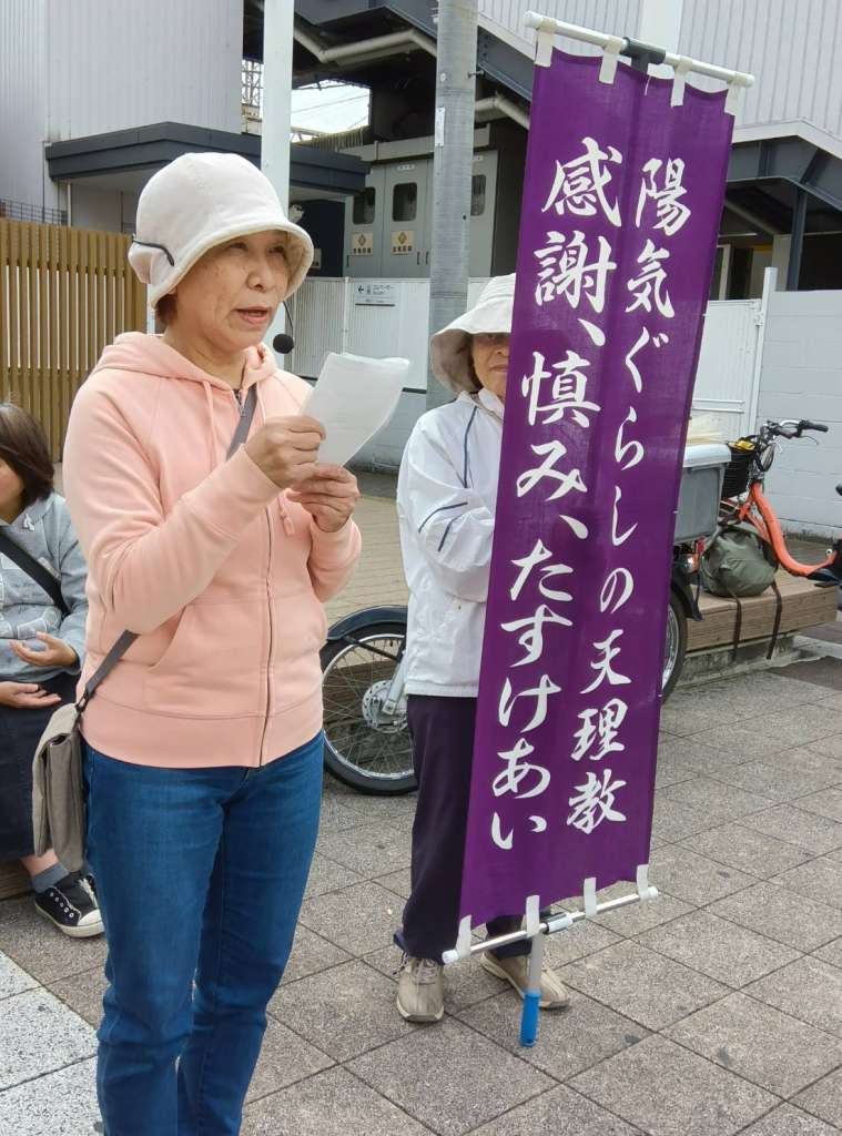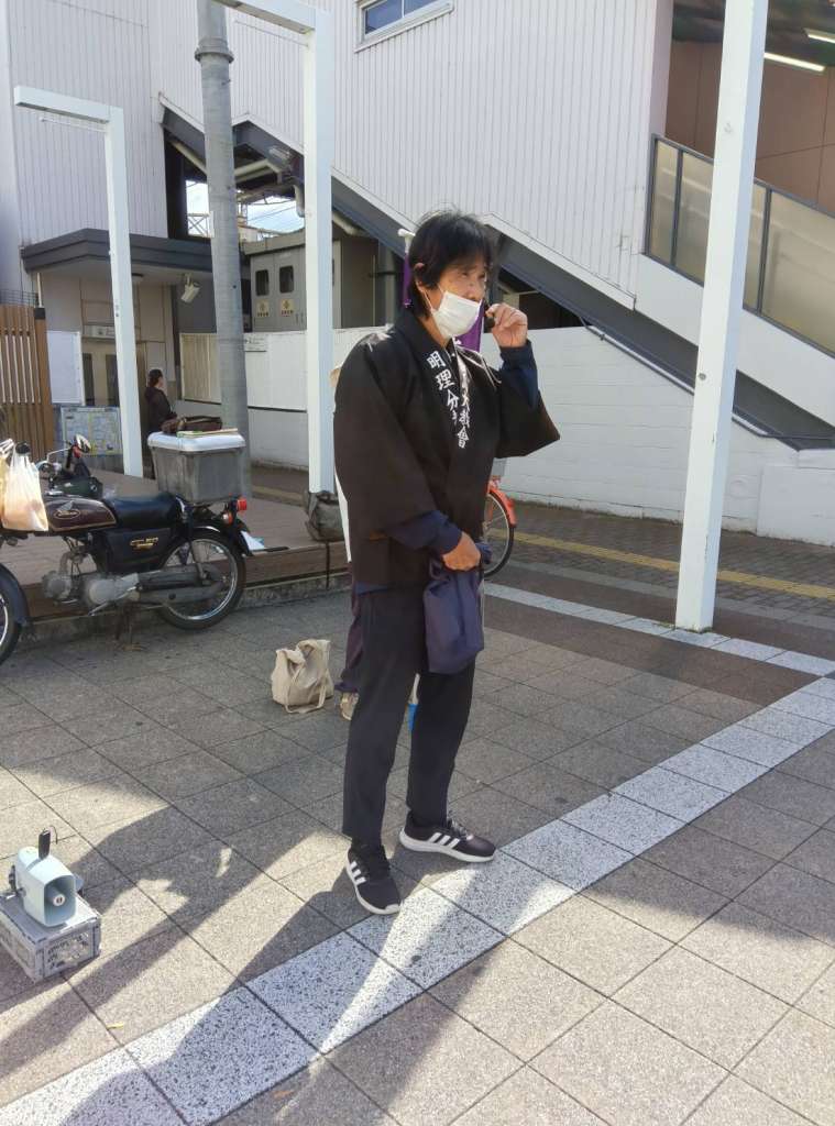 阪南支部では毎月管内の主要駅を拠点にして地域の教友の方と一緒に街頭布教を行っています。