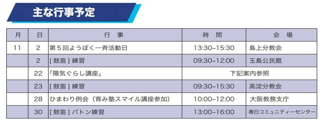 9月12日、茨木市山手台にて50万軒リーフレット配りをさせていただきました。目標の地域を皆で勇んで配る事ができました。その後、繁美分教会で軽食をいただき、話も尽きることなく、楽しい時間を過ごす事ができました。