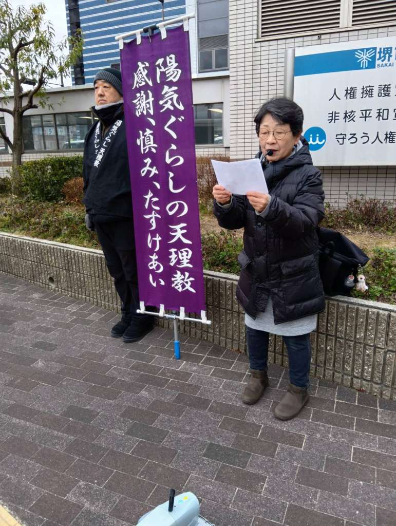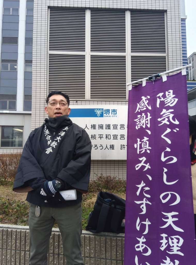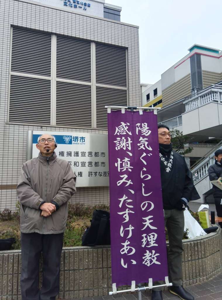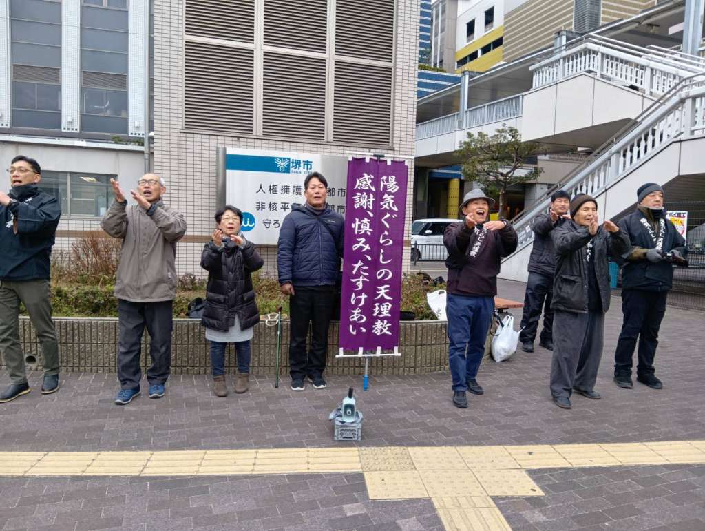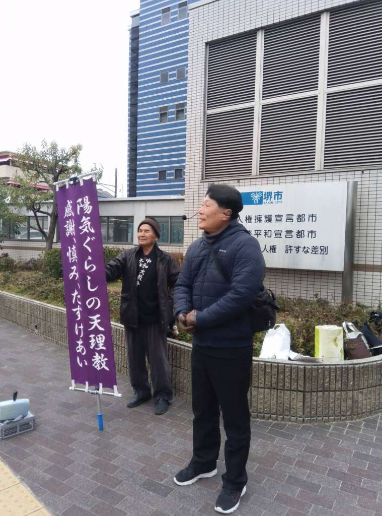 阪南支部では毎月管内の主要駅を拠点にして地域の教友の方と一緒に街頭布教を行っています。