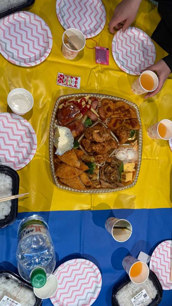 オードブルのお弁当を囲み