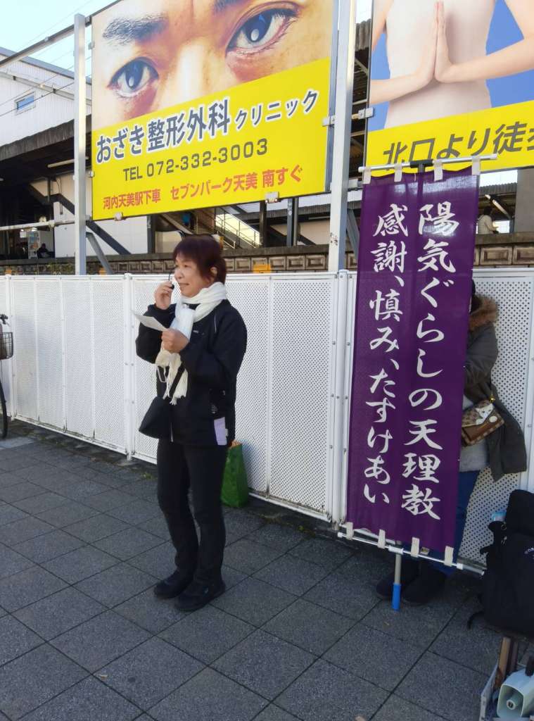 阪南支部では毎月管内の主要駅を拠点にして地域の教友の方と一緒に街頭布教を行っています。