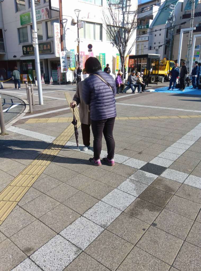 テイッシュを信号待ちの人に手渡し