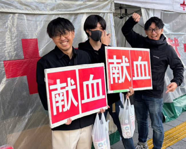 11月3日、阪急高槻市駅エミル前に献血車を配車して、「献血&献血呼びかけ」ひのきしんを行いました。10名が参加、内9名が採血を行いました。