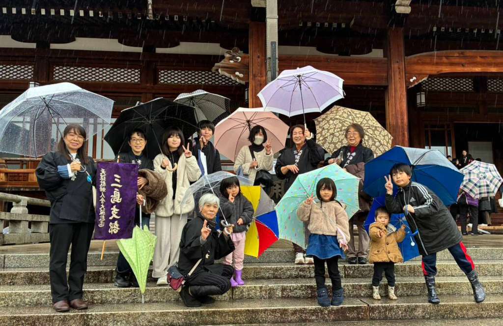 12月25日、大阪教区婦人会の回廊ひのきしんが行われました。本部神殿に集合し、午前11時30分から婦人会活動を今年一年無事に務めることができたお礼と年祭まであと一か月を精一杯に務める決心を込めてお願いづとめをつとめさせていただきました。その後、三島支部は東回廊にて、ひのきしんさせていただきました。