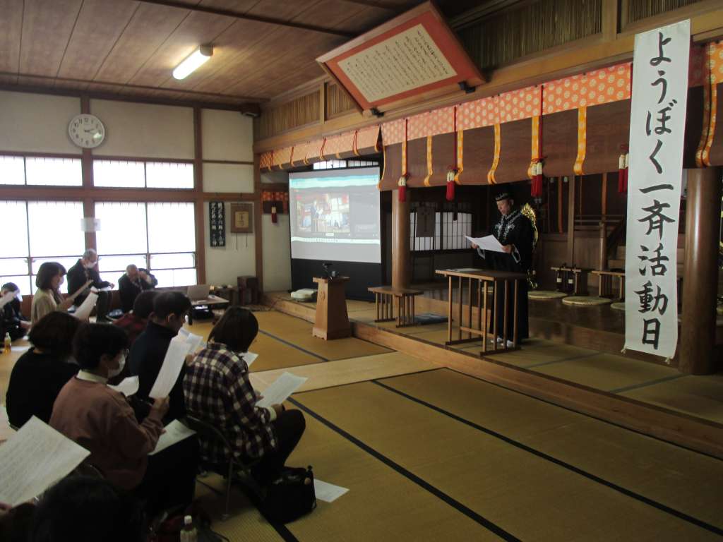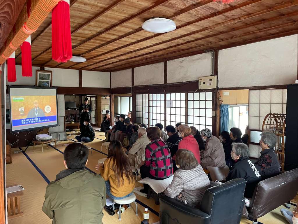 自らの身上にしっかりと向き合い、心を倒すことなく夫婦で勇んでこの三年千日を通られている話を聞かせて頂き、参加者一同感銘を受けようぼく一斉活動日最終回に相応しい締めくくりとなった。また会場責任者の閉会挨拶では、残りの年祭活動を年祭当日を迎えるその日まで、力いっぱいつとめ切らせて頂こうと呼びかけられて閉会となった。