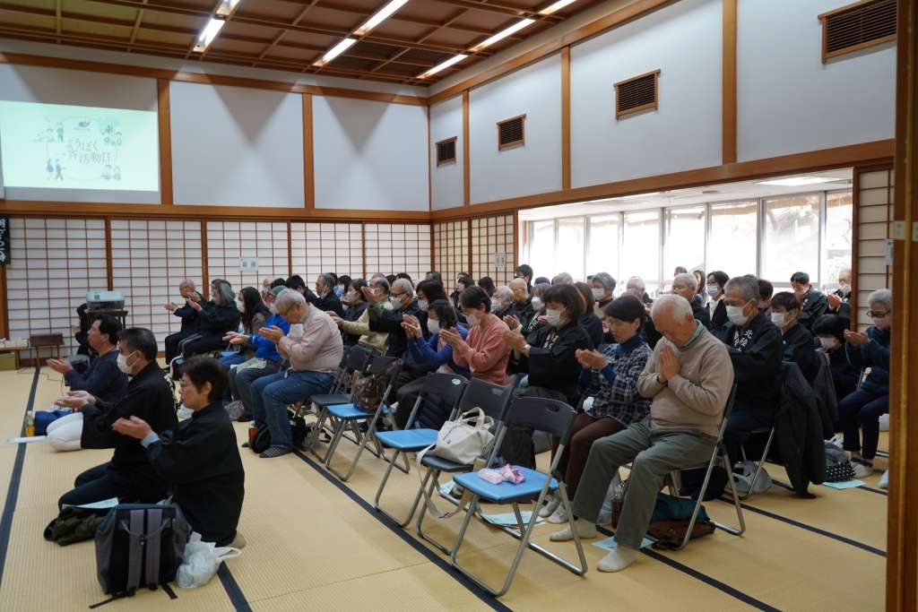 日々の暮らしの中で、ご自身も含め参加者へ陽気ぐらしが出来ているか? との問いかけに始まり、ご諭達に示される陽気ぐらしをするための3つのキーワード「水を飲めば水の味がする」「ふしから芽が出る」「人救けたら我が身救かる」を取り上げ、それぞれのワードにこもる教祖のお心を尋ねながら、この年祭活動中に携わった講師のおたすけは、おやさま存命の理と、肌で感じるおやさまの温もりこそがその原動力であり、一日の終わりにおやさまへ感謝を申し上げる講師の詩に、参加者は一様に心を打たれた様子であった。
