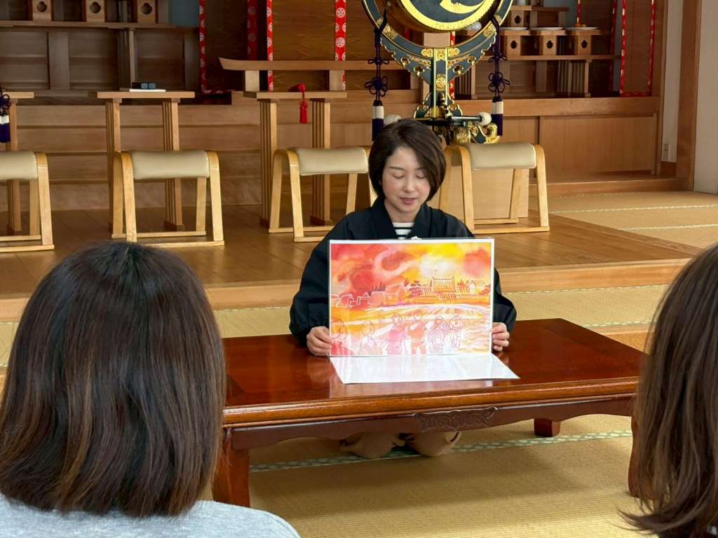 おつとめの後、おやさまの紙芝居を鑑賞。改めてひながたを学び、すごろくトークで、話が深まりました。