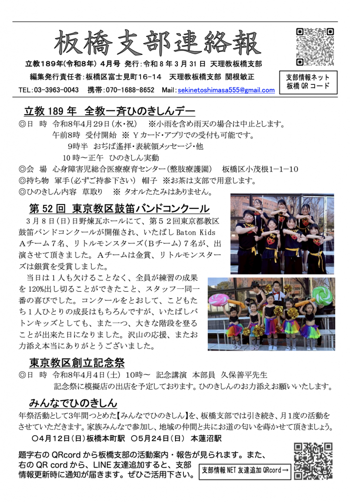 板橋支部の皆様には、沢山の応援、またお力添えを賜り、誠にありがとうございました。