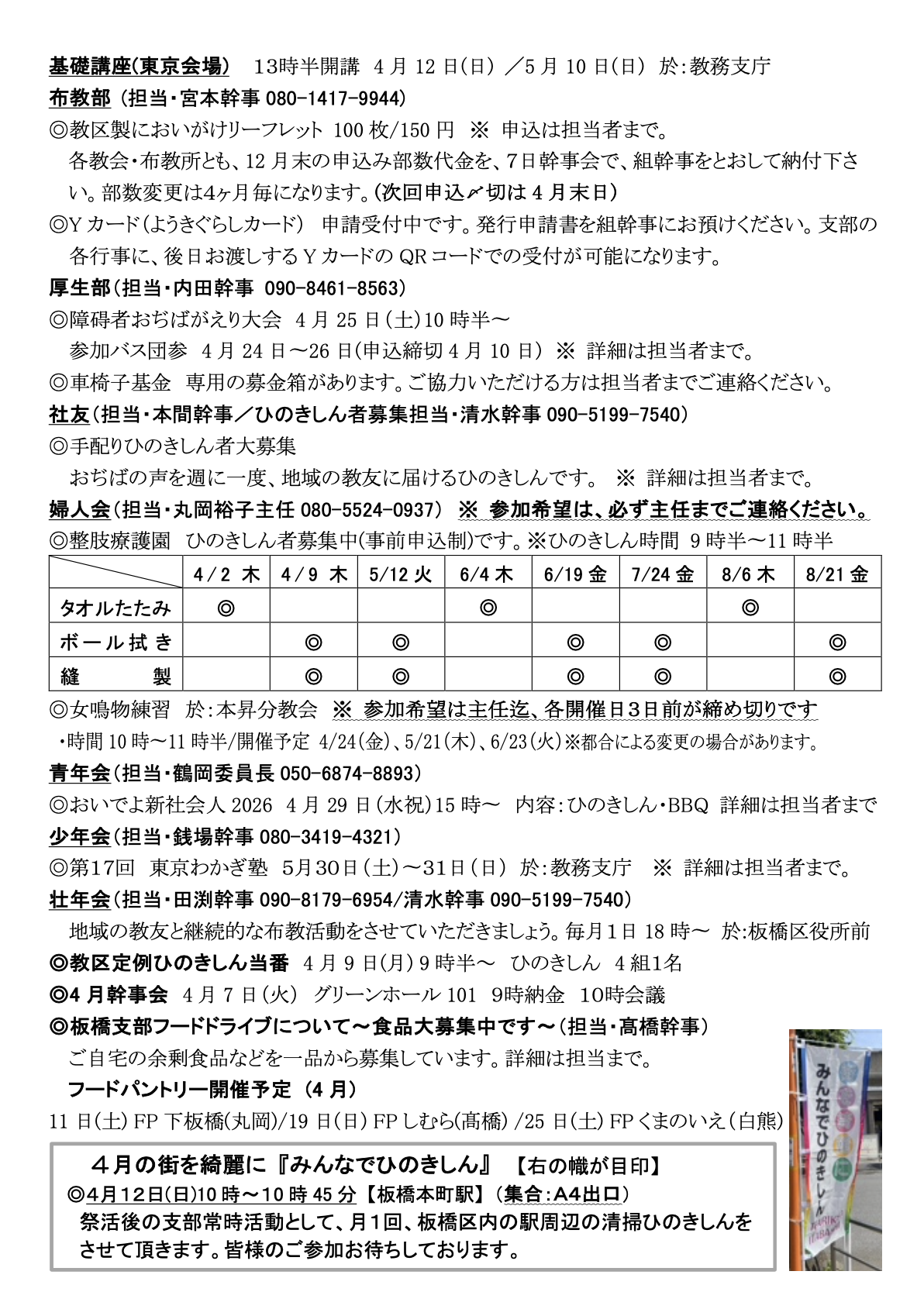 板橋支部 Food Pantry 4月の開催日と拠点