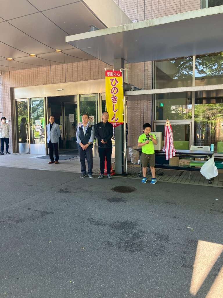9時、受付開始。本年からYカードアプリQRコードでの受付も、参加カードでの受付と並行して運用開始し、9時半、副支部長の声がけにより本部遥拝。
